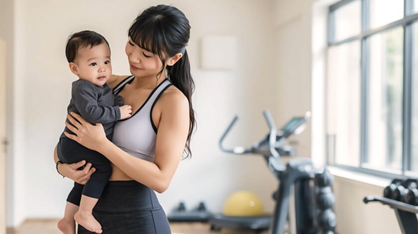 当店では『⽇本産後ダイエット協会』のアドバイスのもと、産後のママの特有のカラダの悩みに寄り添ったサポートを⼼がけております。また、完全個室の空間だからこそ、安⼼してお通いいただくことができ、お⼦様の近くでトレーニングをしながら、⾚ちゃんファーストで臨機応変にご対応をさせていただきます。